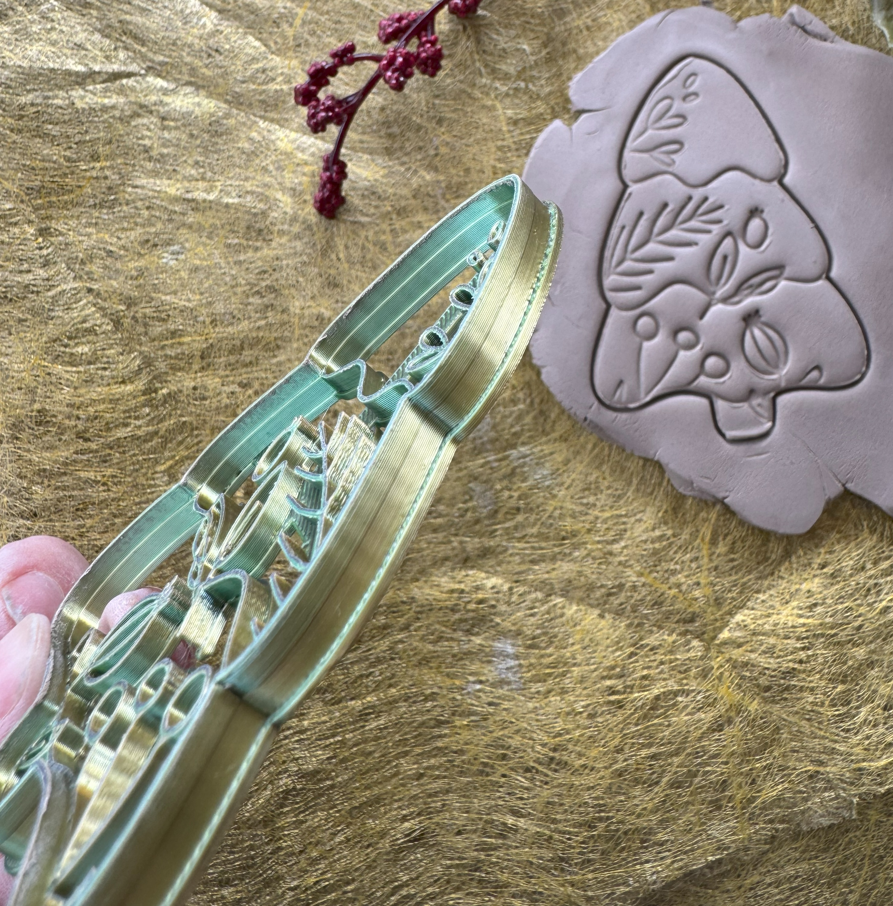 Vykrajovátko a pečiatka v jednom vytlačené na 3D tlačiarni z materiálu PLA. Môžete s ním vykrajovať samotvrdnúcu hmotu, hlinu a podobne. Použiť môžete tiež na cesto, sušienky či medovníky. Produkt sa skladá z dvoch kusov – vykrajovátko a pečiatka, ktoré môžete použiť aj samostatne.