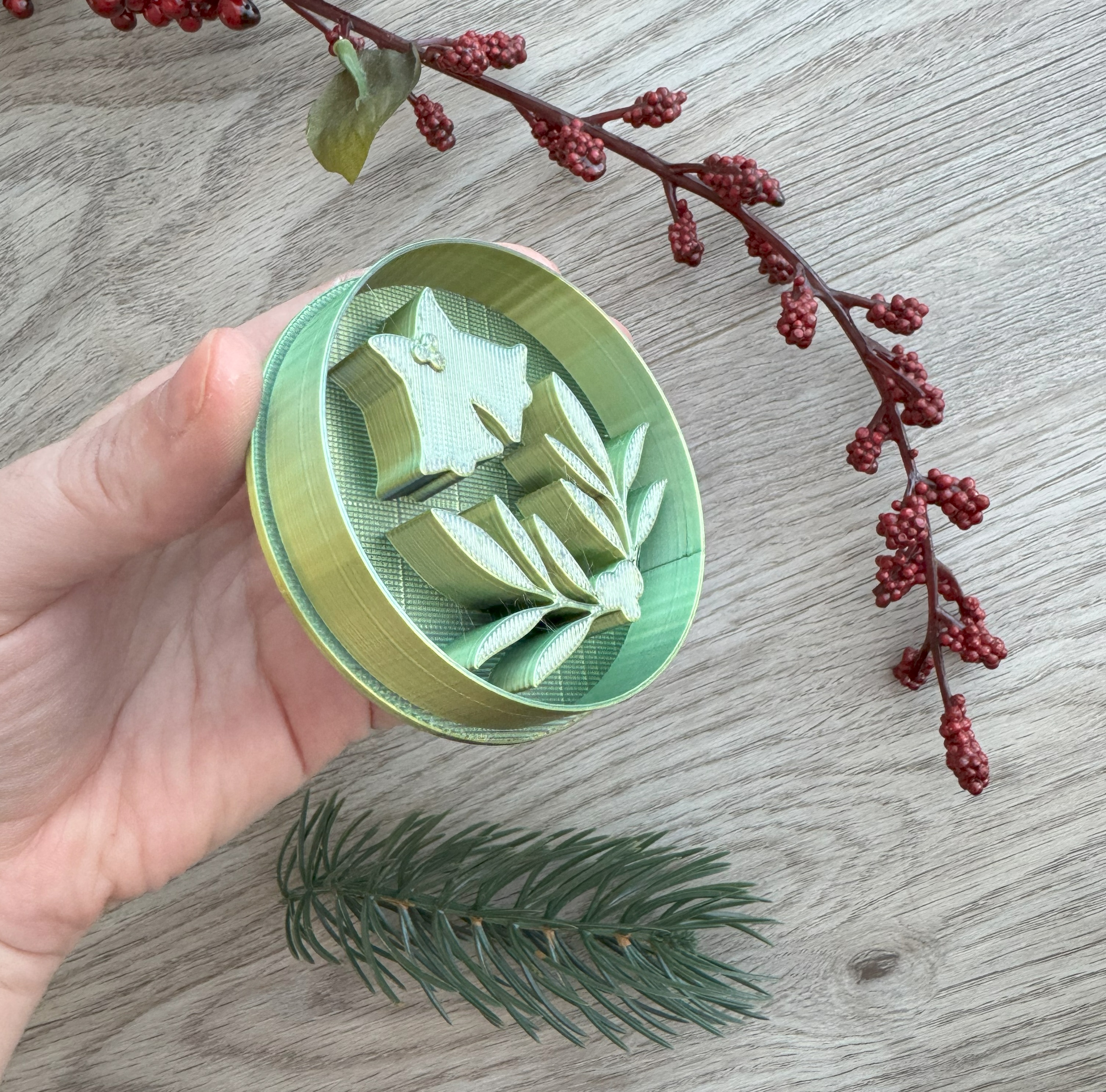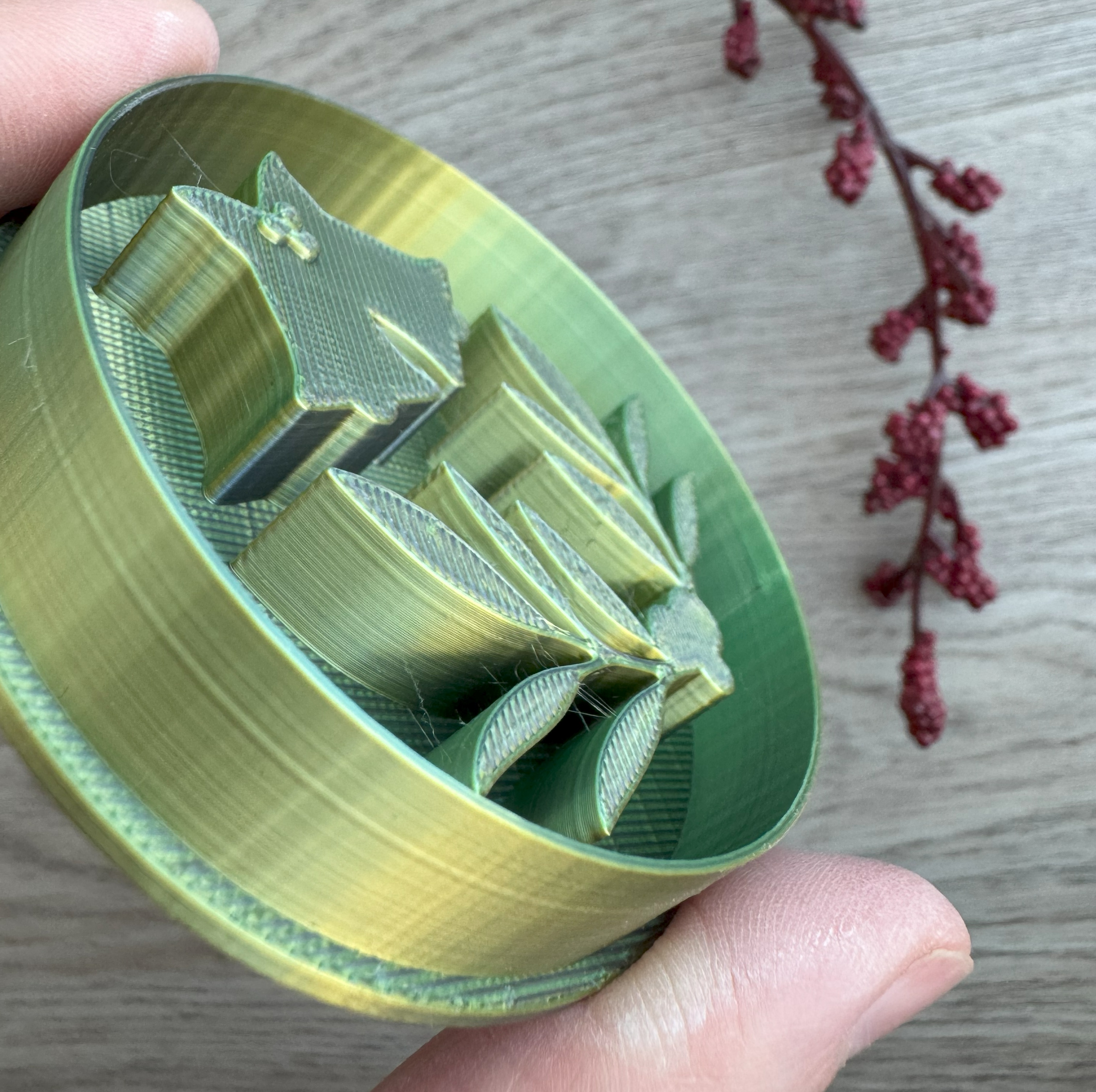 Vykrajovátko a pečiatka v jednom vytlačené na 3D tlačiarni z materiálu PLA. Môžete s ním vykrajovať samotvrdnúcu hmotu, hlinu a podobne. Použiť môžete tiež na cesto, sušienky či medovníky. Produkt sa skladá z dvoch kusov – vykrajovátko a pečiatka, ktoré môžete použiť aj samostatne.